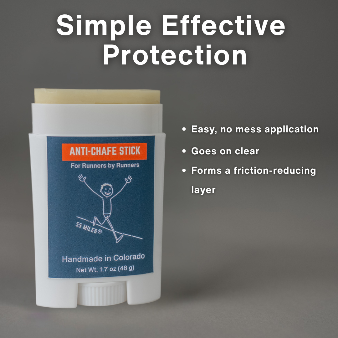 Stay comfortable from the first mile to the last with the 55 Miles Anti-Chafe Stick, designed by runners who understand where chafing actually happens.